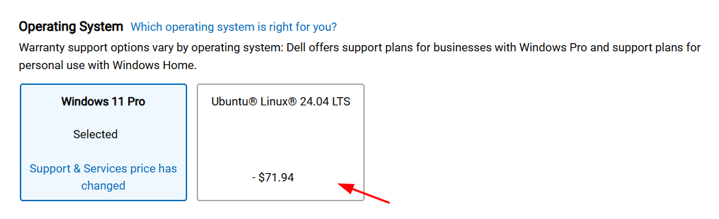 Edit: Also, when selecting a Dell laptop, you can select Ubuntu LTS on the customize/build screen: