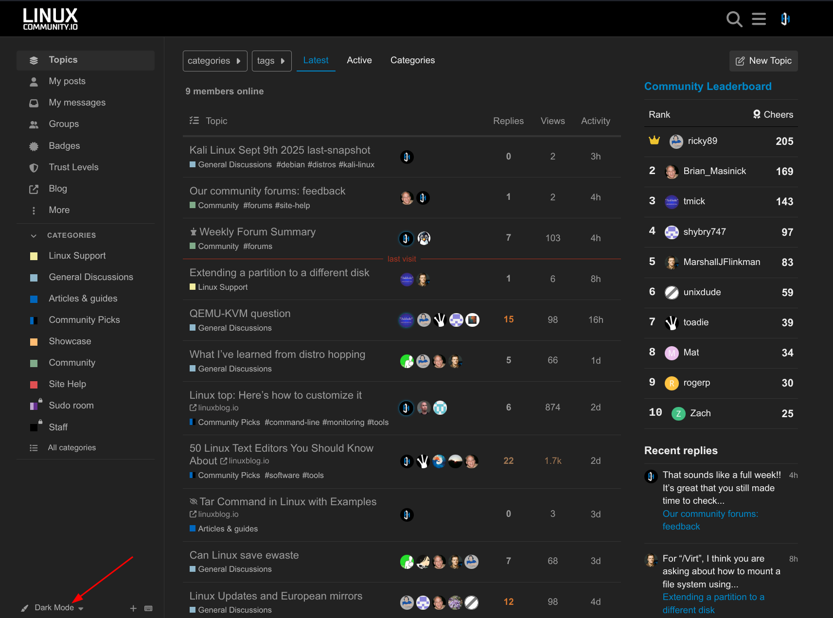 It can be selected at the bottom left. Also, I think if you have Gnome or KDE or browser set to dark mode, it will honor it. But can’t confirm that.