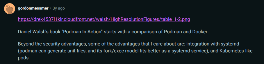 I haven’t used Docker as yet, but I am in the market for using a couple of containers. I was also doing a comparison between Docker and Podman.