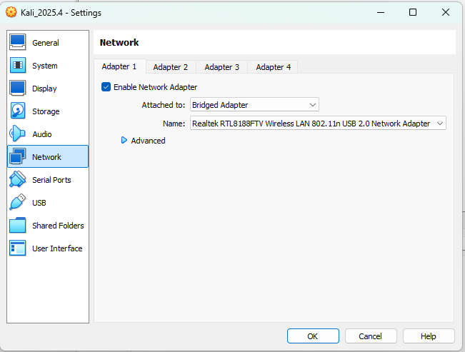 The reason your Kali VM sees an Ethernet connection instead of WiFi is due to how VirtualBox virtualizes network hardware. By default, it bridges your host’s connection as a wired interface.