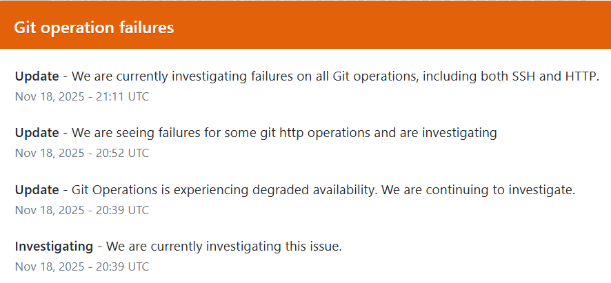 I didn’t even touch Git or GitHub at all yesterday. The ripple effects of the network outage continued to disturb a variety of services, causing problems for AT LEAST half of the day, and that’s being generous. My wife and I were talking about several TV programs; some she watches, several others we watch together. CBS was - and still is - showing signs of problems, but that might be a separate thing. CBS seems to go to war with various providers - we’ve seen it with WOW, Comcast, and Spectrum in the various places we’ve either lived or visited. Apparently the senior CBS management enjoys arguing with service providers, trying to squeeze more out of them. In this case, I think CBS is the one, but I’m not at all certain that it has anything to do with a network outage; I’ve seen these silly battles before and they’re not helpful to anyone but CBS.