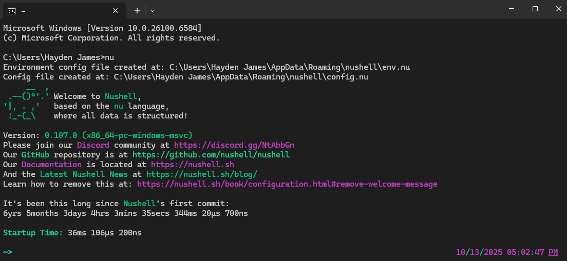 Haha. If you’ve got plenty of good shell choices (e.g. running Linux), nu isn’t quite isn’t so remarkable relatively speaking. I haven’t yet dug into its structured data idea at all, but I can imagine how useful it might be. Did you have trouble getting it to install? I thought that because it’s written in Rust it’d compile and run easy-peasy.