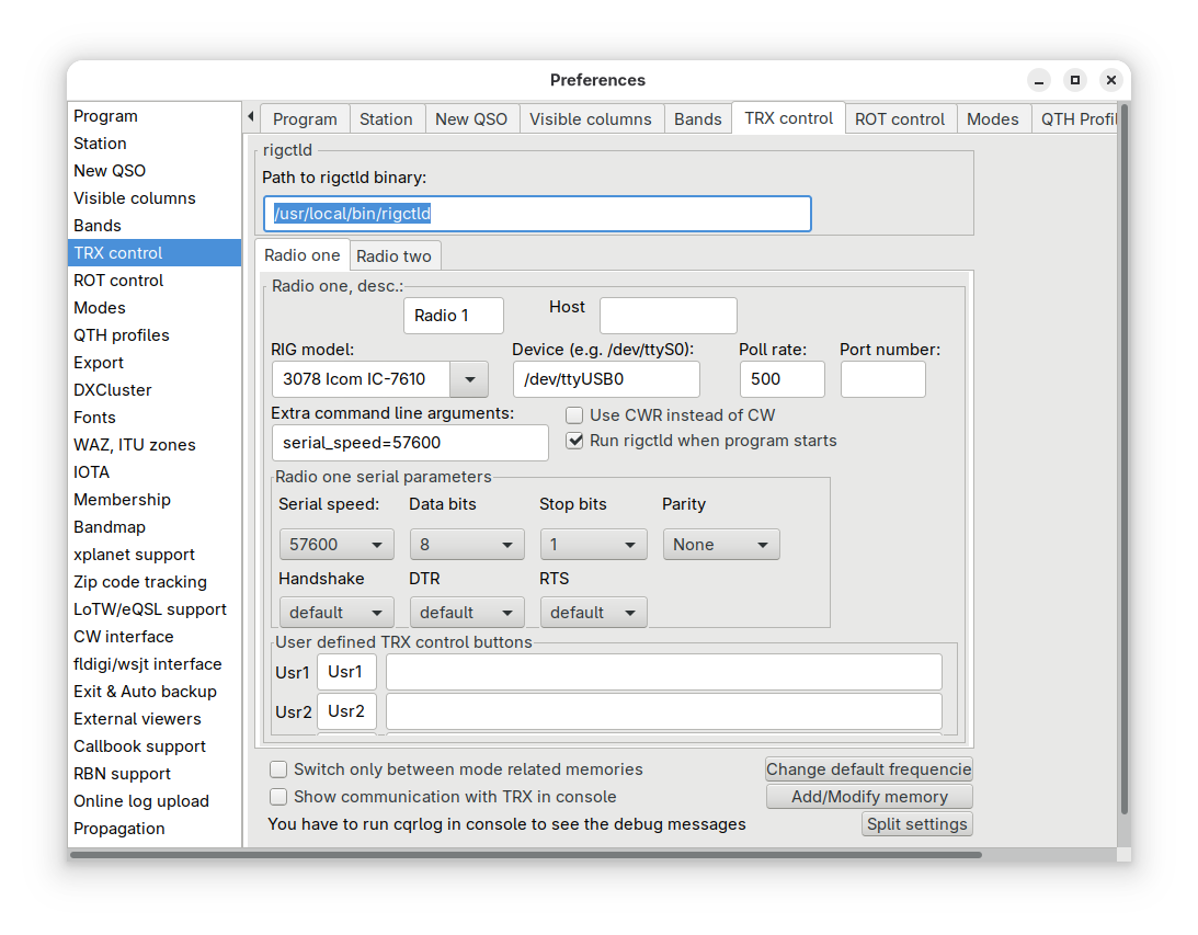 In FLRig, however, the device name isn’t anything similar - if I recall correctly, I have the program talking to a device named /dev/ttyUSB0 to control the first receiver. (I’d have to take a screen shot off that computer to confirm my faulty personal RAM memory.)