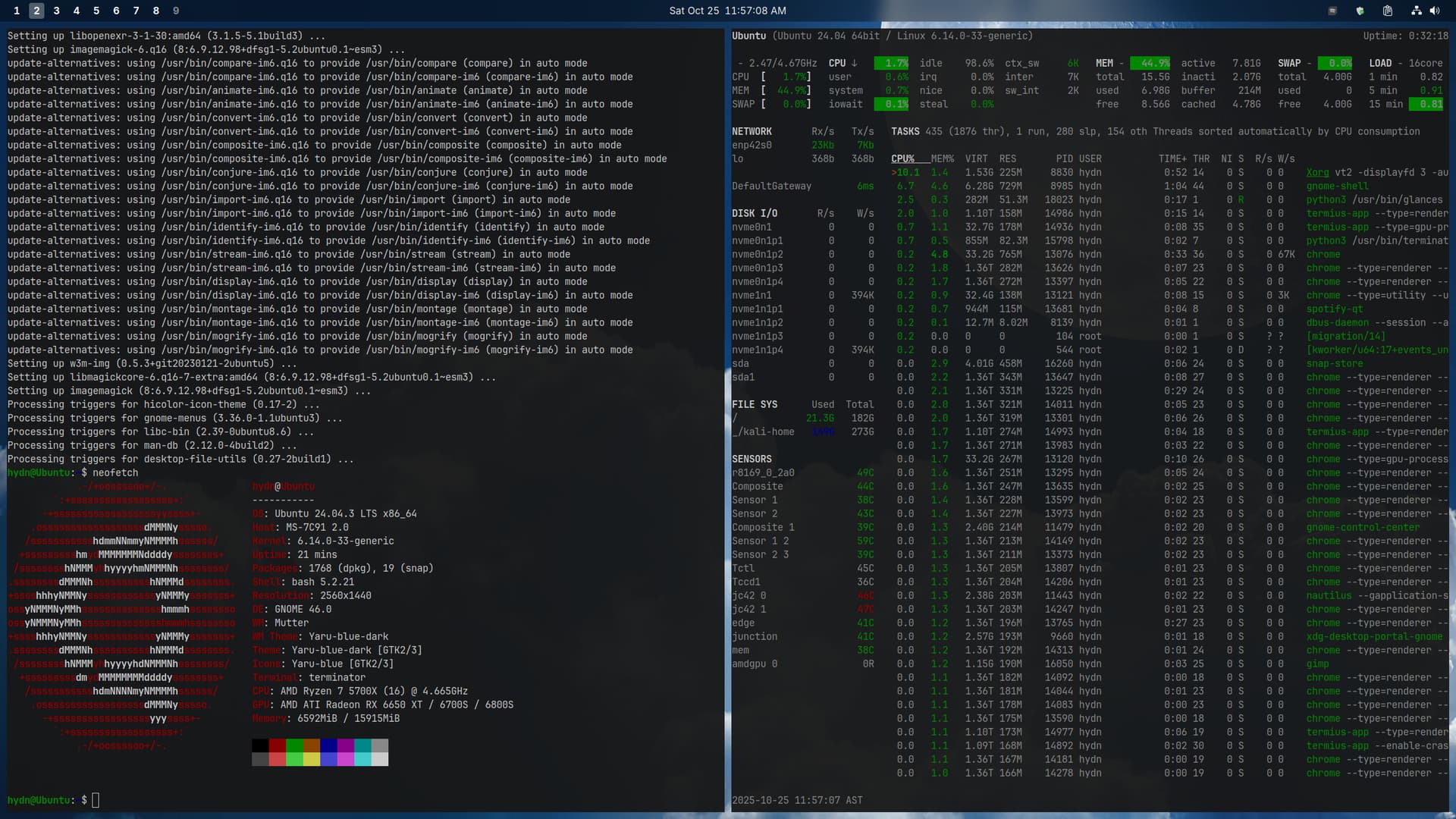 Ubuntu 24.04 LTS + Gnome + Forge tiling: