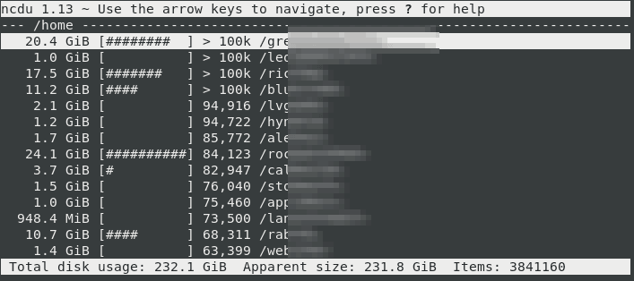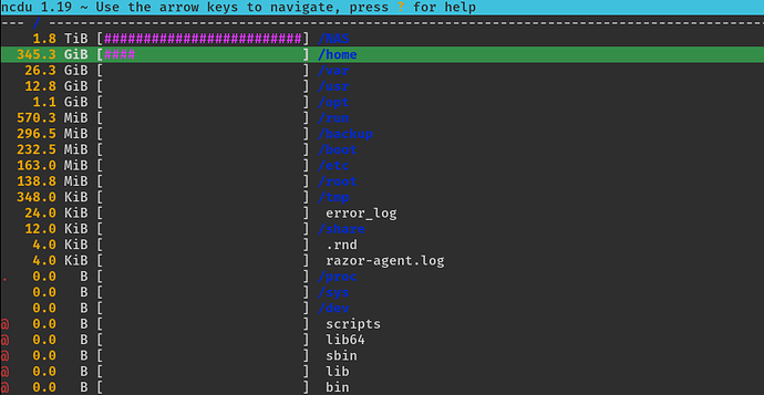ncdu brilliant for cleaning up disk space (sudo ncdu / and you’ll instantly see where the big files are).