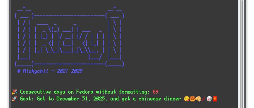 that screenshot cracked me up: “Goal: get to December 31, 2025, and get a Chinese dinner” is the kind of motivation we all need to stop distro-hopping! ![]()